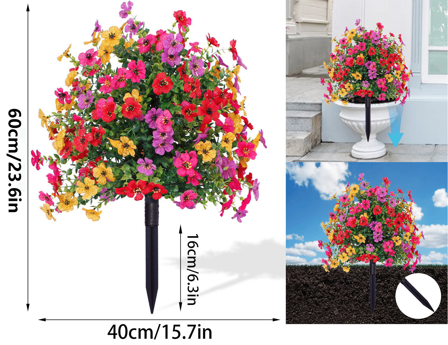 Made from 100% brand new PE material, these flowers are weather-resistant and maintain vibrant colors even under direct sunlight.